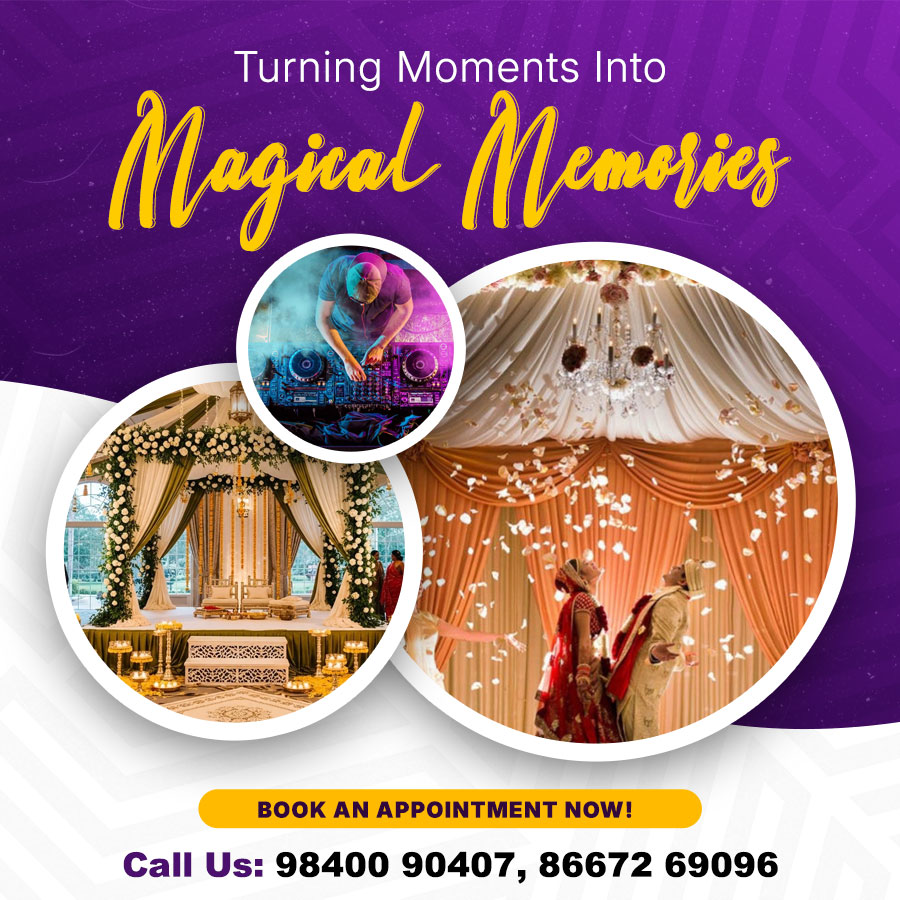 At Rangeela Events, we believe that every celebration deserves to be unforgettable. Established in 1996, we have grown into one of Chennaiโs most trusted names in event planning and decoration. From intimate family gatherings to grand destination weddings and high-profile corporate launches, our mission has always been simple: to transform your vision into reality with creativity, precision, and passion.